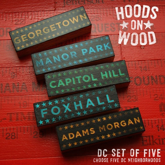 Washington DC Hoods on Wood - Five Art Block Set - Pick the Hoods